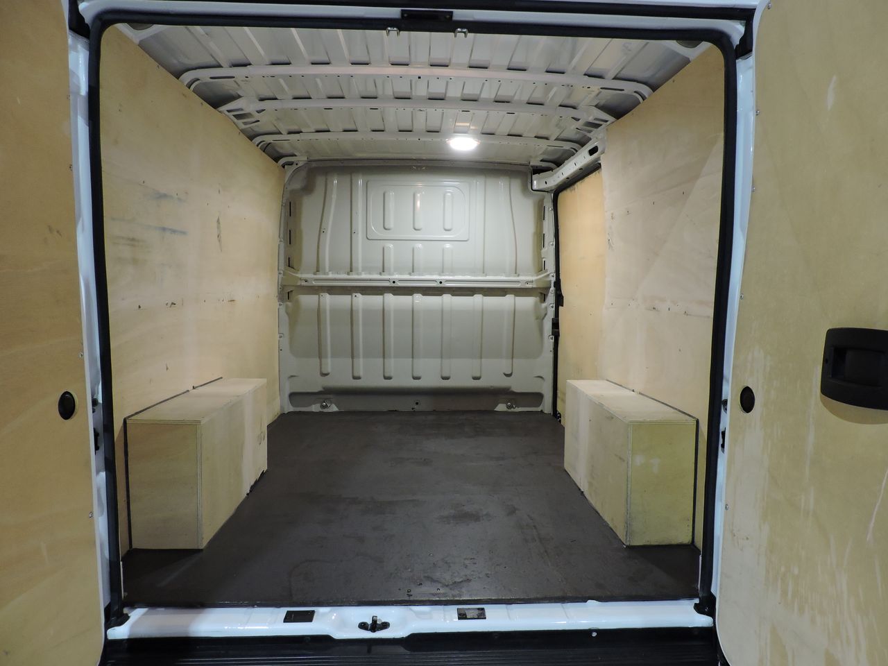 Climatizador, Airbag conductor, Dirección asistida, Elevalunas eléctricos, Equipo de música, Pantalla frontal táctil, ABS, Ordenador, Regulación altura faros, Luz diurna, Asiento acompañante 2 plazas, Doble puerta trasera 180º, Cierre centralizado con mando a distancia, Regulador y limitador de velocidad, Retrovisores eléctricos, GSM-Bluetooth, Conexión USB, Mandos de radio en volante, Fluido aire acondicionado, Faros antiniebla, Tapizado en tela Darko, Asiento conductor con reposabrazos, Sistema de aparcamiento asistido con cámara, 2149 cc (2.2 Ltr) 120CV-88kW, Sistema Stop-Start, Distancia entre ejes corta (L1), Control de tracción, Puerta corredera derecha, Bicapa sólido.