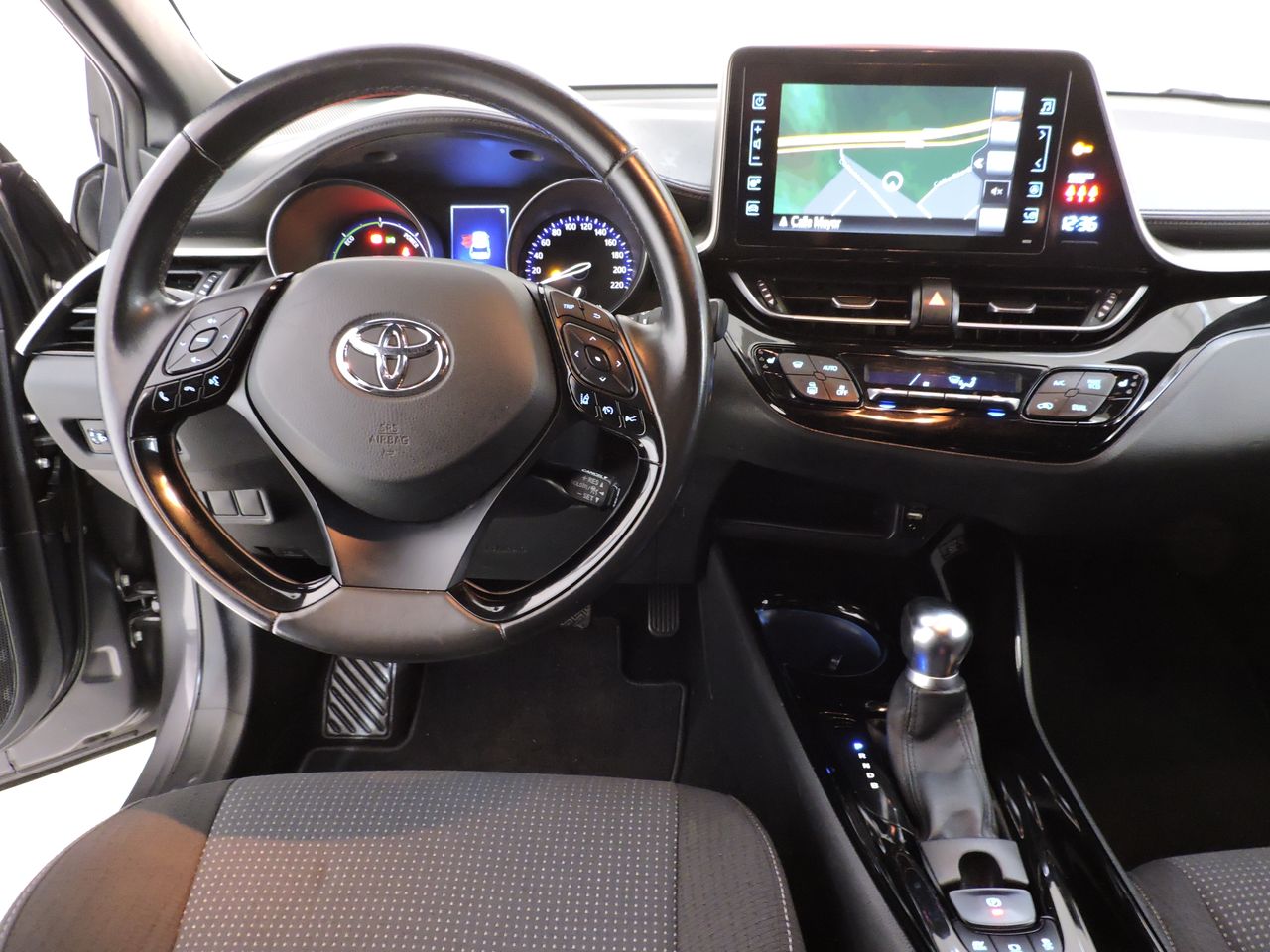 Acristalamiento trasero tintado oscuro, Bicapa metálico, Retrovisores eléctricos, térmicos y plegables, Pilotos traseros LED, Faros antiniebla, Luces de marcha diurna LED, Regulación automática de altura de faros, Sensor de lluvia y luces, Llantas de aleación 18", Climatizador bi-zona, Sistema de acceso sin llave Smart Key, Alarma antirrobo, Radio, 6 altavoces, Bluetooth, Sistema de navegación, Pantalla frontal táctil, Toma USB, Cámara de visión trasera, Sistema de aparcamiento Toyota Park Assist, Monitor de ángulo muerto en retrovisores, Retrovisor interior fotosensible, Volante multifunción de cuero, Asientos delanteros térmicos, Tapicería de tela, Reposabrazos central delantero, Regulador de velocidad, Sistema de seguridad y prevención de accidentes PCS, Cámara frontal con reconocimiento de señales, asistente de cambio de carril y luz de carretera, Airbag conductor, Airbag acompañante, Airbag de rodillas, Airbags laterales, Airbags laterales de cabeza, Dirección asistida, Doble cierre centralizado, Elevalunas eléctricos, ABS, Control de tracción, ISOFIX, Sensor de presión de neumáticos, Freno de estacionamiento eléctrico, Ordenador de a bordo, Cambio automático E-CVT, Tracción híbrida gasolina-eléctrica 1.8.
