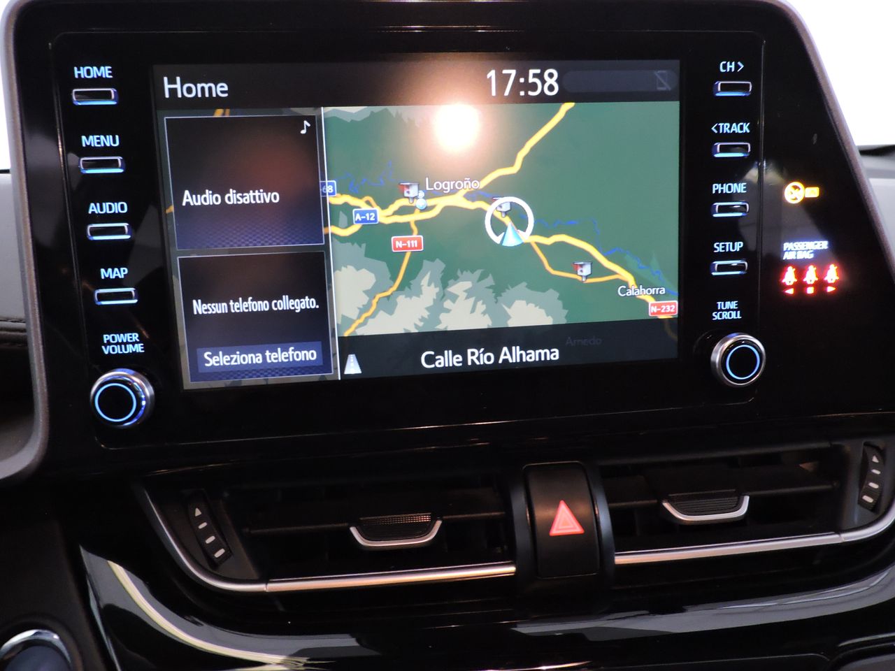Climatizador bi-zona, Doble cierre centralizado, Retrovisores eléctricos, térmicos y plegables, Monitor de ángulo muerto en retrovisores, Sistema de acceso sin llave Smart Key, 6 altavoces, Radio, Retrovisor interior fotosensible, Faros antiniebla, Regulación automática de altura de faros, Faros LED, Pilotos traseros LED, Volante de cuero multifunción, Asientos delanteros térmicos, Cámara de visión trasera, Alarma antirrobo, Sistema de llamada de emergencia, Sensor de lluvia y luces, Cambio automático E-CVT, Sistema de seguridad y prevención de accidentes PCS, Cámara frontal (reconocim.señales-Asist.cambio carríl y luz carretera) Regulador de velocidad, Kit antipinchazos, Llantas de aleación de 17", Airbag conductor, Airbag acompañante, Airbag de rodillas, Airbags laterales, Airbags laterales de cabeza, Dirección asistida, Elevalunas eléctricos,Tapicería de tela, Reposabrazos central delantero, Bluetooth, Sistema de navegación, Pantalla frontal-táctil, Toma USB, ABS, Control de tracción, ISOFIX, Ordenador, Sensor de presión de neumáticos, Asistencia al arranque en pendiente, Freno de estacionamiento eléctrico, Bicapa metálico.