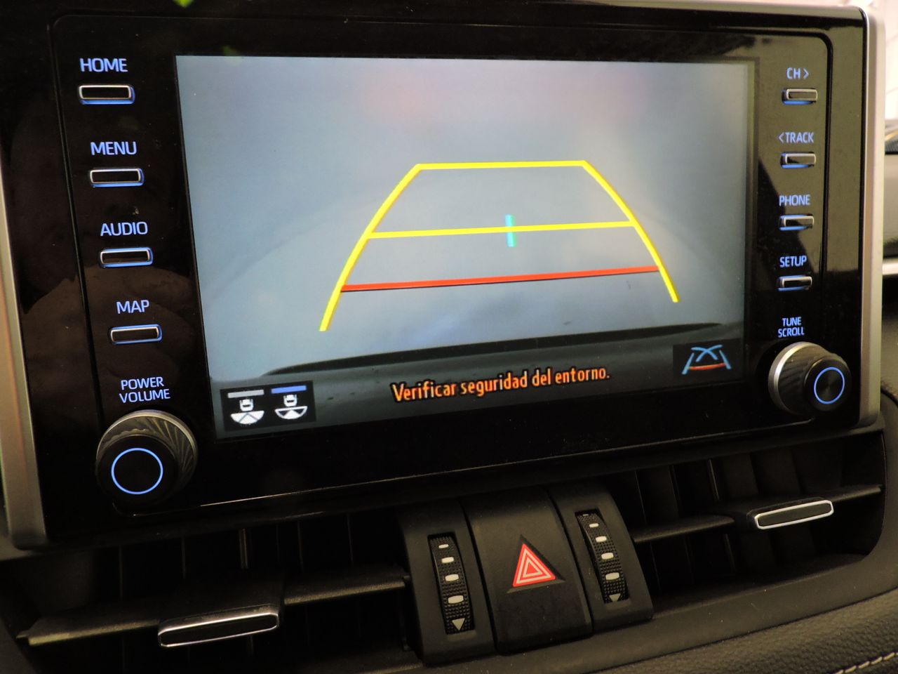 Bicapa perlado, Paragolpes delanteros y traseros pintados en parte inferior, Paragolpes con arcos de rueda y molduras de umbral en negro brillante, Rejilla del radiador pintada en gris metálico, Alerón trasero lateral y moldura del pilar D en negro brillante, Barras de techo longitudinales, Portón trasero eléctrico, Lunas de puertas laterales y luneta trasera tintadas oscuras, Llantas de aleación 17, Retrovisores pintados, Retrovisores abatibles eléctricamente, Faros delanteros de proyector LED adaptables, Faros antiniebla, Piloto antiniebla trasero, Luces de marcha diurna LED, Sensor de lluvia y luces, Sistema de aparcamiento asistido trasero, Cámara de visión trasera, Radar delantero para control de crucero adaptativo y sistemas de seguridad, Toyota Safety Sense, Reconocimiento de señales de tráfico, Regulador de velocidad, Advertencia de cinturón de seguridad delantero y trasero, Avisador acústico para protección de peatones, Airbag conductor, Airbag acompañante, Airbag de rodillas, Airbags laterales, Airbags laterales de cabeza, ABS, Control de tracción, ISOFIX, Sistema control de presión de neumáticos, Discos de freno delanteros de 17", Tracción total, Dirección asistida, Cierre centralizado con mando a distancia, Elevalunas eléctricos, Climatizador bi-zona, Acceso sin llave en puertas delanteras y traseras, Apertura de puerta de garaje a distancia Home Link, Freno de estacionamiento eléctrico, Sistema de llamada de emergencia, Tapicería de tela, Reposabrazos central delantero, Reposabrazos central trasero, Volante de cuero multifunción con levas, Pomo de cambio en cuero, Revestimiento de puertas en cuero, Ordenador, Bluetooth, Sistema de navegación, Toma USB, Radio Digital DAB, Sistema de audio Toyota Touch 2 con pantalla de 8", Equipo de sonido JBL, Sistema de audio con pantalla táctil, Cambio automático E-CVT.