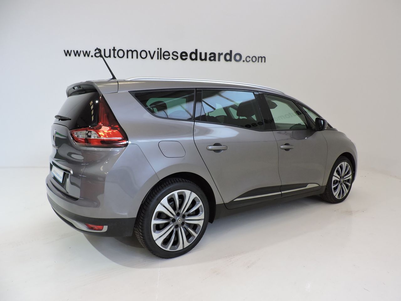 Climatizador bi-zona, Aire acondicionado, Conexión USB, Elevalunas eléctricos, Volante de cuero multifunción regulable, ABS, Airbag acompañante-conductor-laterales, Cierre centralizado, Control de tracción, Luces de marcha diurna LED, ISOFIX, Regulación altura faros, Reconoc. Señales tráfico, Ordenador, Pantalla multifunción táctil, Sensor de lluvia y luces, Toma USB, Sistema Start-STOP, Manillas exteriores cromadas, Reposabrazos central delantero, Acristalamiento trasero oscuro, Retrovisores eléctricos- plegables eléctricamente, Radio, Bluetooth, Faros Full LEDH3 Technology, Mapa de navegación standard, Faros antiniebla, Sistema de aparcamiento del+tras, Tapizado en tela, 1749 cc (1.7 Ltr) 120CV-88kW, Freno de estacionamiento automático, Regulador y limitador de velocidad, Control de presión de neumáticos, Rieles de techo, 7 plazas (Grand Scenic), Bicapa metálico.